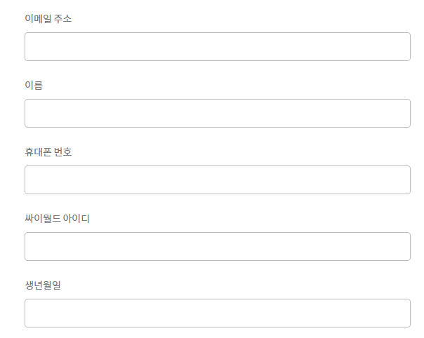 - 사진에 나와 있는 것처럼, 이메일 등 개인정보를 입력합니다.